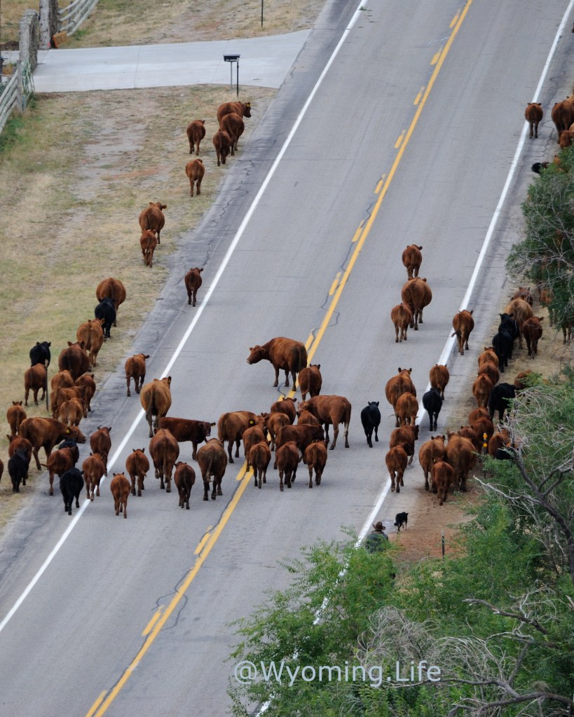 Cattle are coming down off summer pasture in the next month, or so. Scenes like this are common place in Wyoming. If you are just passing through, and you come across folks moving cattle down the road, please slow down. Way down. You can gently drive through the cattle, they’ll move out of your way. No need to honk your horn, and it wouldn’t hurt to give a nod and check-in with the folks working hard to bring food to your table.
